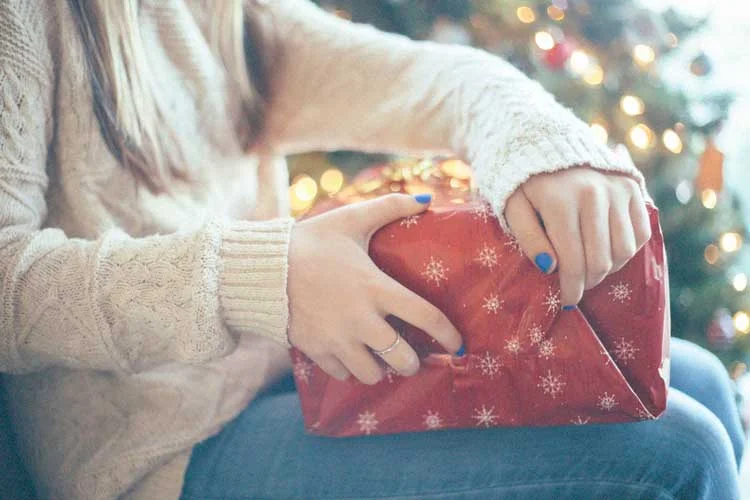 - When using Christmas paper, wrap the shoebox lid and base separately.